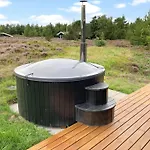 0043-Romo-Blabaervej-4-A Villa has an equipped kitchen fitted with an electric kettle, a refrigerator, and an oven. A sauna can be enjoyed by guests on site.